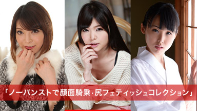 "永遠のロリ系アイドルこと篠めぐみ改め、碧しのちゃん、日本人離れしたハーフのような顔立ち、まるで宝〇歌劇団のイケメン男優役の雰囲気漂う桐島ひかるちゃん、そして、顔に似合わずワイルドな痴女こと上野真奈美ちゃんがノーパンストで顔面騎乗!! 桃のような美尻にノーパンスト姿、男の顔にその尻をぐりぐりと押し付け、一歩間違えれば男は顔面騎乗尻押し付けプレイ! 最高の尻をした美女3人は必見です!"