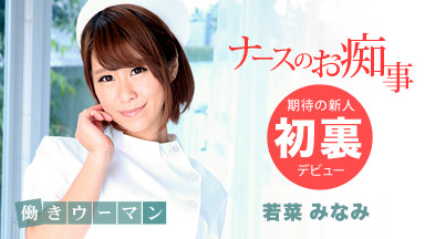 "一本道からまたまたキュートな女優がデビューです! 白衣の天使と言う言葉がピッタリの若菜みなみちゃんが一本道人気シリーズ「働きウーマン」で超キュートな新人ナースとして登場!患者さんのニーズに全て応える、美巨乳と抜群の腰使い、濃厚な口技でどんな患者さんだって下半身を献身的に看護しちゃいます。快感に喘ぎ悶える美しすぎるナースの姿にアナタのチンポは勃起度120%!まちがいありません!"