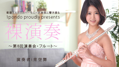 "楽器とエロスのハーモニーが身体に響き渡るシリーズ「裸演奏」。 フルートを演奏してくれる青空舞ちゃん。 美しい音が奏でるとともに熱い全裸でまずは演奏。素敵なドレスを身にまとう舞ちゃんをソファに座らせ、さらにフルートを吹かせながら下半身弄り。大股を開きフルートの先っぽをびしょびしょのおマンコに出し入れした。美しい音と喘ぎ声が混じり奏で出すエロスのハーモニカー。うーん!たまらない。おマンコから出されたホヤホヤのフルートを舞ちゃんのお口でフェラを連想させながらペロペロ。その後も全身で感じまくり絶頂を何回も迎えた。"