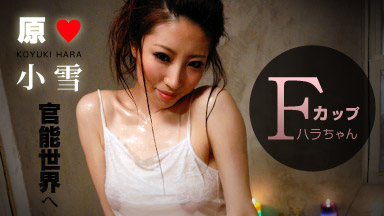 "Fカップの色白美人、原小雪ちゃんの新作登場。相変わらず乳輪がいやらしいですね。今回は黒い衣装を纏い、まずは痴女でチンポに食いつく淫乱娘。何本もチンポをそのいやらしい口で咥えたかと思えば、卑猥な乳輪を露にパイズリを始め、クーガな目つきで男を挑発しまくる姿でまずは2発は抜けます。後半は2人の男に拘束され、その挑発的なカラダを隅から隅まで弄ばれます。2本のチンコをまずは上の口に頬張り、美味しそうにチュパチュパと舐める小雪ちゃん。拘束されることでより興奮を覚えて感じているのでしょう。どんだけ感じているのかチェックすると、ビラビラの中に隠れたマンコが既にねっとりと糸を引いていました。終いにはそのびしょぬれのマンコに2本のチンコを刺されて、喘ぎまくる小雪ちゃん。何度も絶頂を迎え、気を失うほどの快感に襲われる彼女の悶える姿は何度見ても抜けますよ。原小雪の魅力に犯されたい人は必見です!"