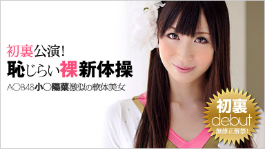 "A○B48のこじ○ること小○陽菜に激似の超軟体美女・陽菜ちゃんが、なんとココ一本道で初無修正デビュー!なんでも新体操が特技だというので、それならせっかくのこの初裏大舞台、裸でヤッてもらいましょうそうしましょう、エイエイオー!それにしてもその体の柔らかさとイったら!もう柔らかいを通り越して、むしろやらわかい(違)!そしてそのおっぱいのデカイこととイったら!もうEカップを通り越して、むしろFカップ(それは合ってる)!世の男性諸君が一度は疑問に思ったであろう「I字開脚をしてるときのオマムコはどうなってんだ?」の答え、陽菜ちゃんが責任持ってお見せします!え?もっと見せろって?ええ、ええ、もちろんちゃーんとご用意しております!エコな時代にマッチした緑のこん棒オナニー、超高度ブリッジフェラ、そして目指せチンメダル!真・こん棒での床演(淫)技でイキつく間もなくイキまくり!人智を超えたウルトラ体位で魅せ、咥え、悶える巨乳版こじ○るの初裏作品!さあ、画面の前のアナタも人智を超えた超難度オナニーで、目指せ十点マン点!"