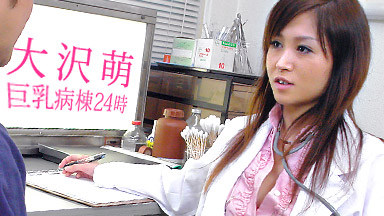 "大沢萌が女医を務める中出しクリニックの第2診察室は自慢のお胸でなんでも治してくれます。初診はキス。もっと舌出してっんっ。萌女史の喘ぎ声ももれちゃってます。巨乳に免疫のない患者さんも萌女史の巨乳を揉ませてもらえば、やばいですねぇ〜。懇切丁寧に感じさせる胸の触り方を教えてくれます。もちろん女性器の説明も萌女史のほっこり雰囲気で教えてくれます。マン毛を引っ張って、クリトリスに被ってる皮を吊り上げてみましょう。萌女史の透明な汁がドゥルッと溢れます。すこすこGスポットを擦ると隣の病室、いやいや、隣の病棟にまで聞こえそうな喘ぎ声でどっちが診察されてるのかわからない状態。あくまで診察ですからねぇ、動かないでください。でかすぎるオッパイを顔の上に置いてみる萌女史に、患者は圧死しそう。チンコも舐めあげられて、あまりの気持ちよさに金玉が縮み上がっちゃいます。萌女史も我慢できなくなって急いでおパンツを脱ぎ捨て高速騎乗位。悪い膿(ザーメン)を搾り出したらさっそく病理にまわしましょう。第1診察室の様子も見てみてください。"
