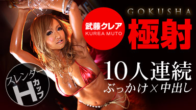 "華奢なBODYラインからは想像もつかないHカップの武藤クレアちゃんが極射の生贄。ぶっかけ10人隊X中出し10人隊のザーメンを褐色のギャル肌に這わせます。わさわさ伸びてくる男どもの手をニッコリと待ち受けるクレアちゃん。コロコロとよく笑う可愛らしいコだ。でもまだこの企画の趣旨がわかってないみたいだね。責める手が多ければ多いほど女のコの狂う確率は高くなる。抱えあげられてマ○コをほじくられたらいよいよ悲鳴を上げ始めました。絶景、絶景。噴出した潮を世界自然遺産に登録したいね。マンコをいぢるのはそろそろ限界かね。そろそろチンコさんたちを順番に咥えてもらいましょう。ノドの奥までイれたい人はイれちゃってかまいませんっ。パイズリをしたい人は一列に並んでくださいっ。余興はこんなところにしておいて、さぁ、ゆけっ、ぶっかけ10人隊X中出し10人隊。ちらちら登場するワイングラスが気になる。"