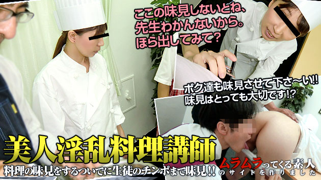 "料理で重要なのは味見!料理の腕は確かな美人料理講師のひろこ先生。しかし、どうしても生徒のチンポが気になってしまう淫乱料理講師らしい!こんなに美人な先生がまさか・・・。実際に料理講習をしてみるとやはり生徒が男性ばかり・・・噂は本当なのでしょうか。言われた通りに講習を受けていると、チンポをまさぐりだす先生!とりあえず初めてきた生徒はまずチンポの味見をするらしい!?他の生徒は「いつもの事ですから、アハハー」なんて落ち着いています。なんという夢の料理教室でしょうか!先生が新人生徒のチンポを味見する間に、他の生徒は先生のお尻とオマンコを味見!そのままお口で新人生徒の精子を搾り取るひろこ先生!新人生徒の精子の味見までしちゃいました!それを見て我慢できなくなってきた他の生徒達、通いつめた他の生徒達は挿入も許されてる!?上の口で味見をした後は、下のお口でも味見しちゃうんですね、先生〜!"