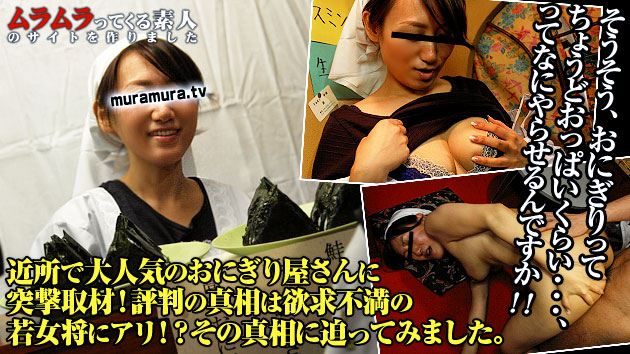 "懐かしくて自分で作るよりなぜか美味しい近所で評判のおにぎり屋さん!若女将が一人で切り盛りしているそうで、ちょっとした噂を耳にしたので評判の真相を探る為に突撃取材しました!その噂とは・・・、いつも忙しくて女将が欲求不満らしく、おにぎりだけじゃなくてお客のチンポまで握ってしてしまう淫乱人妻だとか!それ目当てにリピーターが多いらしい!?それは本当なのでしょうか。実際にインタビューをしてみるとそんな風には見えませんが・・・、下ネタを交えて質問してみるとなんかだんだん大胆になってきたような・・・?「ダメです、ダメです、もうすぐ開店ですがら、間に合わないですから」と拒みまくるも言いくるめられていく若女将!あれ、この梅干、どうですか?なんて言いながら乳首をクリクリっと刺激すると「あぁん、ダメです・・ダメですぅ、脱げちゃう脱げちゃう」とどんどん露出!あまり時間もたたない内に「ヤバイ・・・、ヤバイ、アァァ声出ちゃう、大きい声出ちゃう」と感じちゃってる様です!欲求不満だったんですね!割烹着のままどんどん乱れていく女将!おにぎりで食欲を満たして若女将で性欲を満たせる、それは男性客に評判がいい訳ですね!"