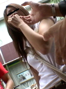 "2人の男に連れられて暗い廃墟に入ってきたまいちゃん。「自分で望んで来たんだよな!」「こういうことするの好きなんだよな!」とじりじり言葉で攻められながらショートパンツの下に手を入れられ、自分でアソコをいじりだします。窓からの光だけで薄暗い廊下、そこで今度は下半身はむき出し状態で立たされ、お尻をたたかれ”ピシャッ!”っという音が静かな廊下に響き渡りまいちゃんの色白の顔は困惑と屈辱を味わっている色が漂っています。怪しい雰囲気で始まり、徐々に凌辱はエスカレート。バイブがぐさりと刺さった色白の可愛いお尻を突き出し壁の棚の上を歩かされます。まるでサーカスの手慣づけられた動物のようです。その状態からハメ師のチンコをしゃぶり、もうひとりの男が刺さったバイブを抜き取って手動で弄り廻します。口には垂れてきそうにヨダレがタップリ!部屋を移動して、手枷をされ、柱につながれて後ろから生チン挿入!突き上げられる小さな身体、そして、小さなオマンコ。色んな角度から突かれまくって、最後は中で発射!オマンコから垂れてくるドロドロザーメン。"